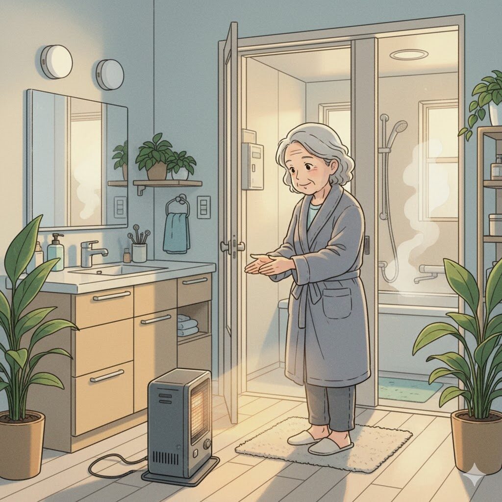 - 脱衣所の暖房: 入浴前に小型のヒーターなどで脱衣所を暖めておきましょう。暖かいリビングとの温度差を少なくすることが重要です。